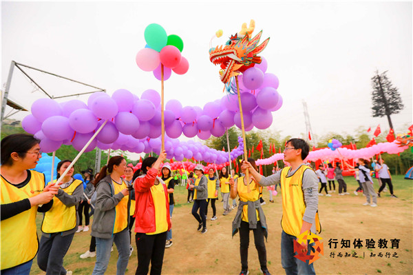 经过一下午的努力终于每个小队都将本队的龙给搭建完毕,有粉的有红的,有蓝的有紫的,五颜六色煞是好看。接下来就是在教练的带领下学会舞龙的技巧,通过队员的配合完成腾转挪移,游八字,盘龙、戏龙等精彩的环节。